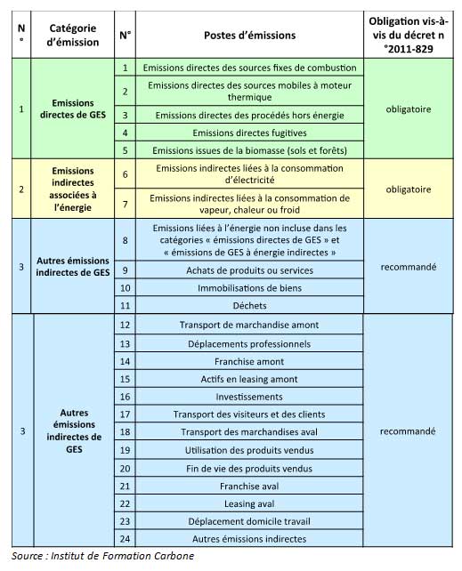 A noter que tous ces postes sont obligatoirement pris en compte dans le cadre du bilan carbone© pour correspondre au cahier des charges de la démarche.