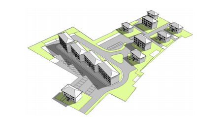 Elle est constituée de 6 bâtiments collectifs et de 6 pavillons, le tout rassemblant 50 logements soit environ plus de 4000m2 de surface.