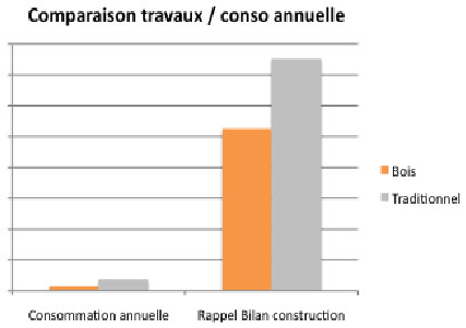 Si l’on tient compte du carbone stocké dans le bois (il est prélevé à l’atmosphère lors de la croissance du bois), l’impact du chantier est alors 50% inférieur à celui d’une construction traditionnelle !
