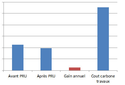 On constate qu’il faut une vingtaine d’année pour amortir le cout carbone des travaux sur les économies d’énergie réalisées.