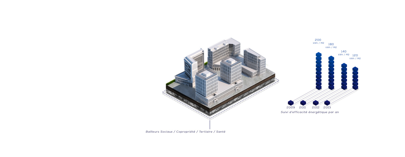 Nous proposons la mise en place de capteurs connectés dans le cadre de notre suivi d’exploitation des équipements techniques. Nous contrôlons le fonctionnement dans le temps des installations de chauffage et de ventilation et corrélons cela avec les usages et index de conforts et qualité de l’air dans le but d’anticiper d’éventuelles dérives ou dysfonctionnements. Cela se matérialise par une plateforme d’accès sécurisée pour nos clients avec une vision en temps réel d’ensembles immobiliers monitorés sous notre responsabilité.